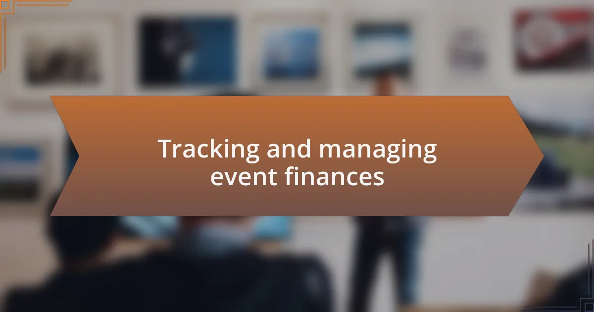 When it comes to tracking event finances, I’ve found that maintaining a detailed budget spreadsheet is essential. For instance, during a multi-day festival I organized, I created separate tabs for income and expenses. Monitoring those figures daily helped me quickly identify any discrepancies, allowing for immediate adjustments. Have you ever experienced the anxiety that comes from realizing the budget is off? Trust me, that spreadsheet saved my sanity.